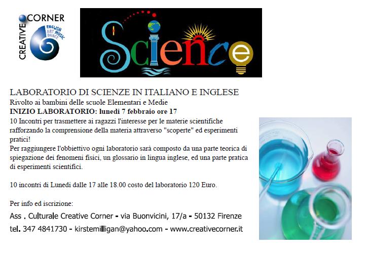Science workshop in Italian & English that is starting today Mon Feb 7th at 5.00pm till 6.15pm.