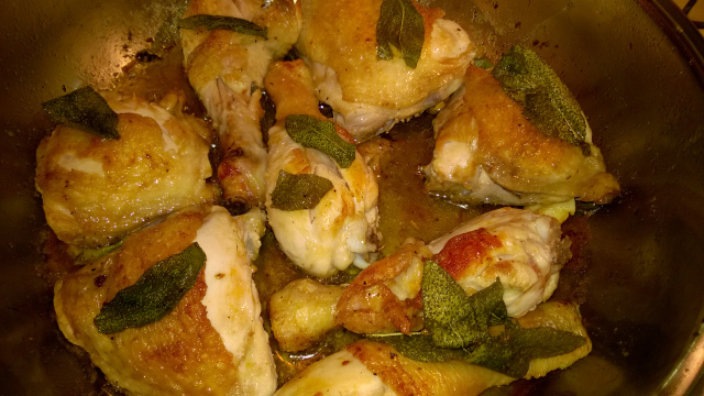 My herb garden is growing strongly right now and a great time to use some fresh herbs. I decided to cook up some Chicken and Sage. It is very easy and no oven involved. Ingredients chicken in pie…